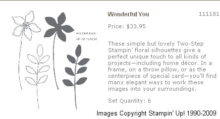 Wonderful You stamp set is available for purchase only through June 30, 2009. Follow the link www.stampinsmiles.stampinup.net to place your online order now!