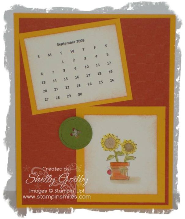 Everything I used to create my calendar is found in the Stampin' Up! 2009-2010 Idea Book & Catalog and can be ordered on my Stampin' Up! website by following the link www.stampinsmiles.stampinup.net. One stop shopping! You just have to love that. I know I appreciate the convenience of it.