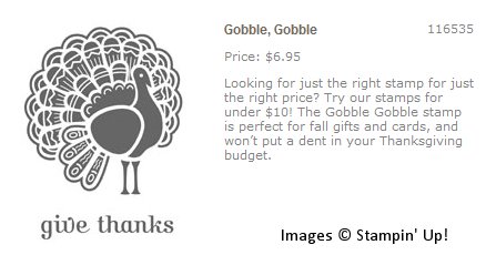The turkey is a single stamped offered in the Stampin' Up! Holiday Mini Catalog,