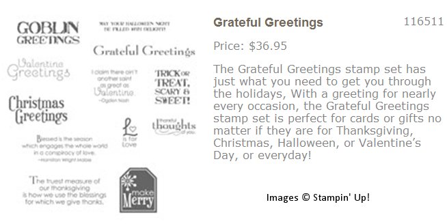 The greeting is from the Holiday Mini Catalog stamp set Grateful Greetings (116511). Grateful Greetings is available for purchase only until January 4, 2010.