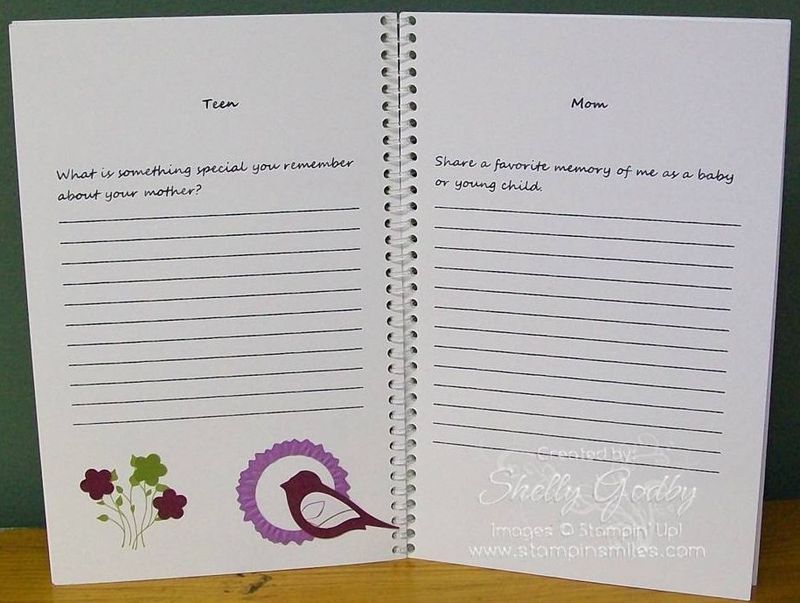 Pictured here is a quick reminder of what the journals look like. Follow the link to learn more about and order a Mom & Me Personal Journal https://stampingsmiles.com/2010/04/stampin-up-cottage-wall-designer-series-paper-to-make-mom-me-books-great-gift-for-mothers-day-or-any.html.