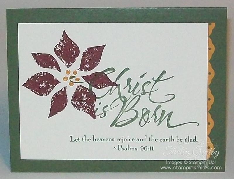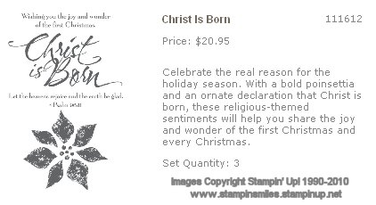 Last year I made a Christmas card with the Christ is Born stamp set (pictured below) for the Stampin' Smiles 12 Weeks of Christmas (cannot show it because the Christmas projects are exclusive and a promise is a promise). I received several emails from those who loved it and planned to use the design for their Christmas cards. It sure was fabulous, but it was not fast. I needed to come up with a design that was not only fast, but had to be the promised fabulous for my Christmas in July Fast & Fabulous Cards class.