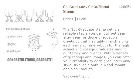 Time is quickly running out to order the Go, Graduate stamp set from the 2010 Stampin' Up! Summer Mini Catalog! Mini Catalog stamp sets are limited-edition with a very slim chance you will see it in the 2011-2012 Stampin' Up! Idea Book & Catalog.