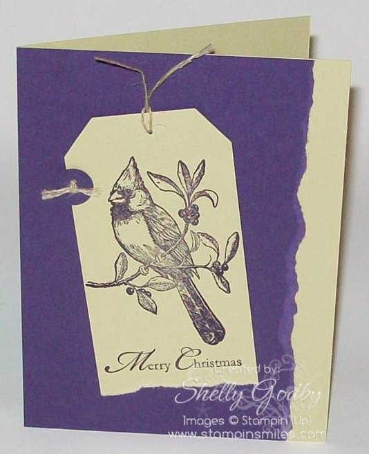 My Christmas card using A Cardinal Christmas color combination was made from the Color Coach. The colors are Elegant Eggplant and River Rock. Not traditional Christmas colors but pretty all the same.