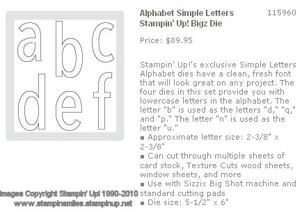 I just knew if I purchased the exclusive Stampin' Up! Bigz Die Alphabet Simple Letters for my Sizzix Big Shot Die-Cutting Machine, I would do project after project with it. Happily, I was right! I have used it to make a sign, titles for scrapbook pages, advertise my website on the back windshield of my car, but my favorite project, so far, is the sign I made for my Stampin' Up! studio. Have a look!