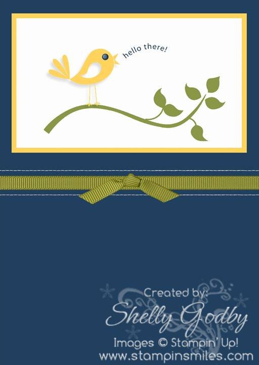 Here is a quick card I made using a color combination from the Color Coach, Daffodil Delight, Night of Navy and Old Olive, and My Digital Studio. The stamp images are Cheep Talk.