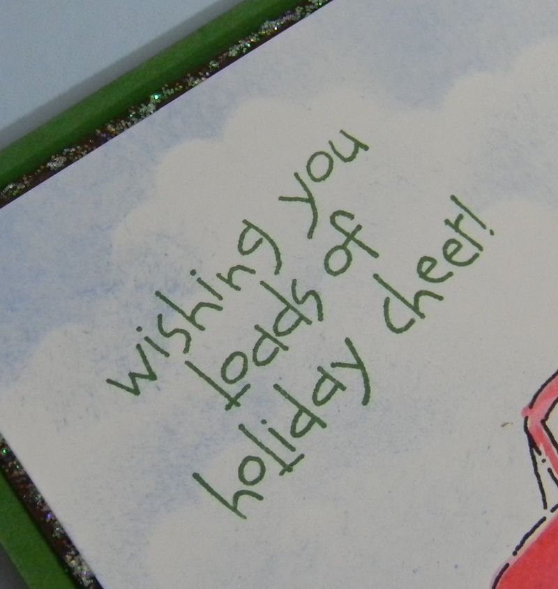 Are you sending handmade greeting cards this Christmas? Do like lots of dazzle for your Christmas cards? If so this handmade greeting card is loaded! My Stampin' Up! Loads of Love pickup truck is on one glitzy snow covered road courtesy of the Mica Flakes found in the 2011 Stampin' Up! Holiday Mini Catalog.