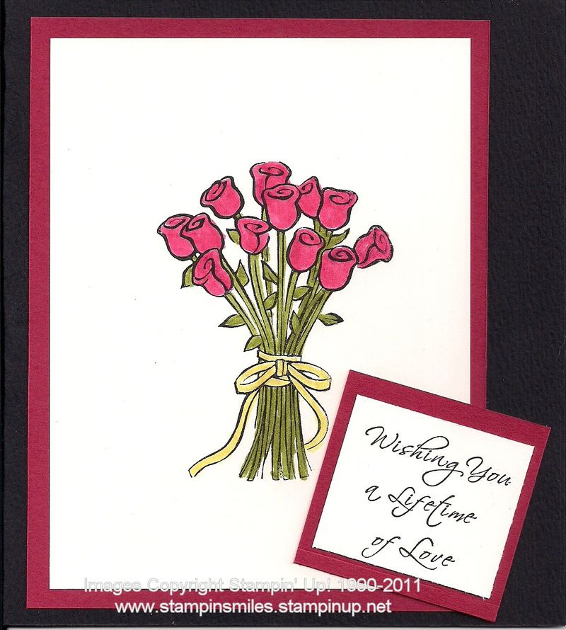 The now retired Life's Special Moments is the stamp set Beverly used to make her wedding card.