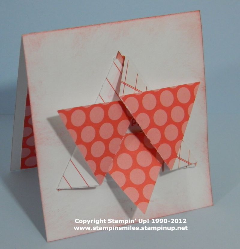 How great is that fold? It is a large triangle. Each flap has two folds. Unfold the three to see inside it has a Fourth of July greeting.