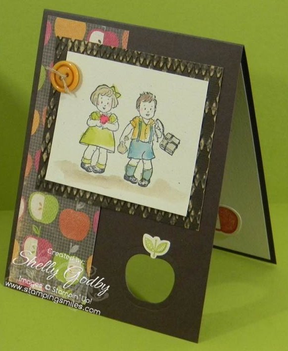 Put all the elements together for a nostalgic back-to-school greeting card. Is the card to welcome a teacher to her first job? Or perhaps a mother dealing with mixed emotions watching her children go off to a new year of school knowing they will be grown in a blink of an eye?