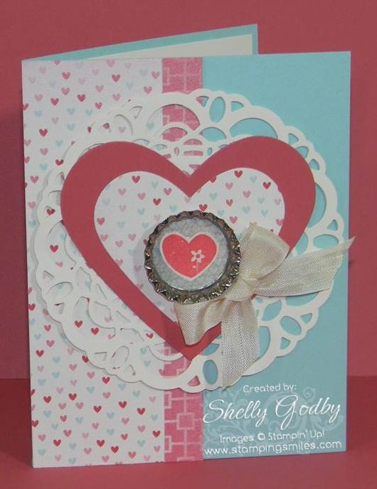 The stamped heart is highlighted by using a Stampin' Up! Soda Pop Top to hold it. The Soda Pop Top is an unusual accessory for your handmade cards. Isn't it fun to step out of the norm? The Soda Pop Tops are found in the Stampin' Up! 2013 Spring Catalog and available to order through May 31, 2013 in my online store.