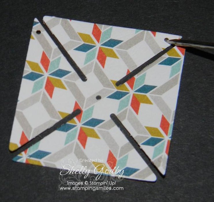 Poke out the small die-cut holes in the corner of each triangle, if needed.